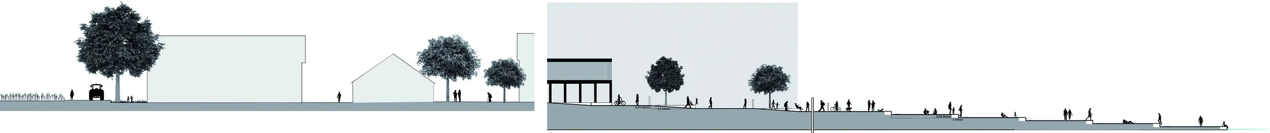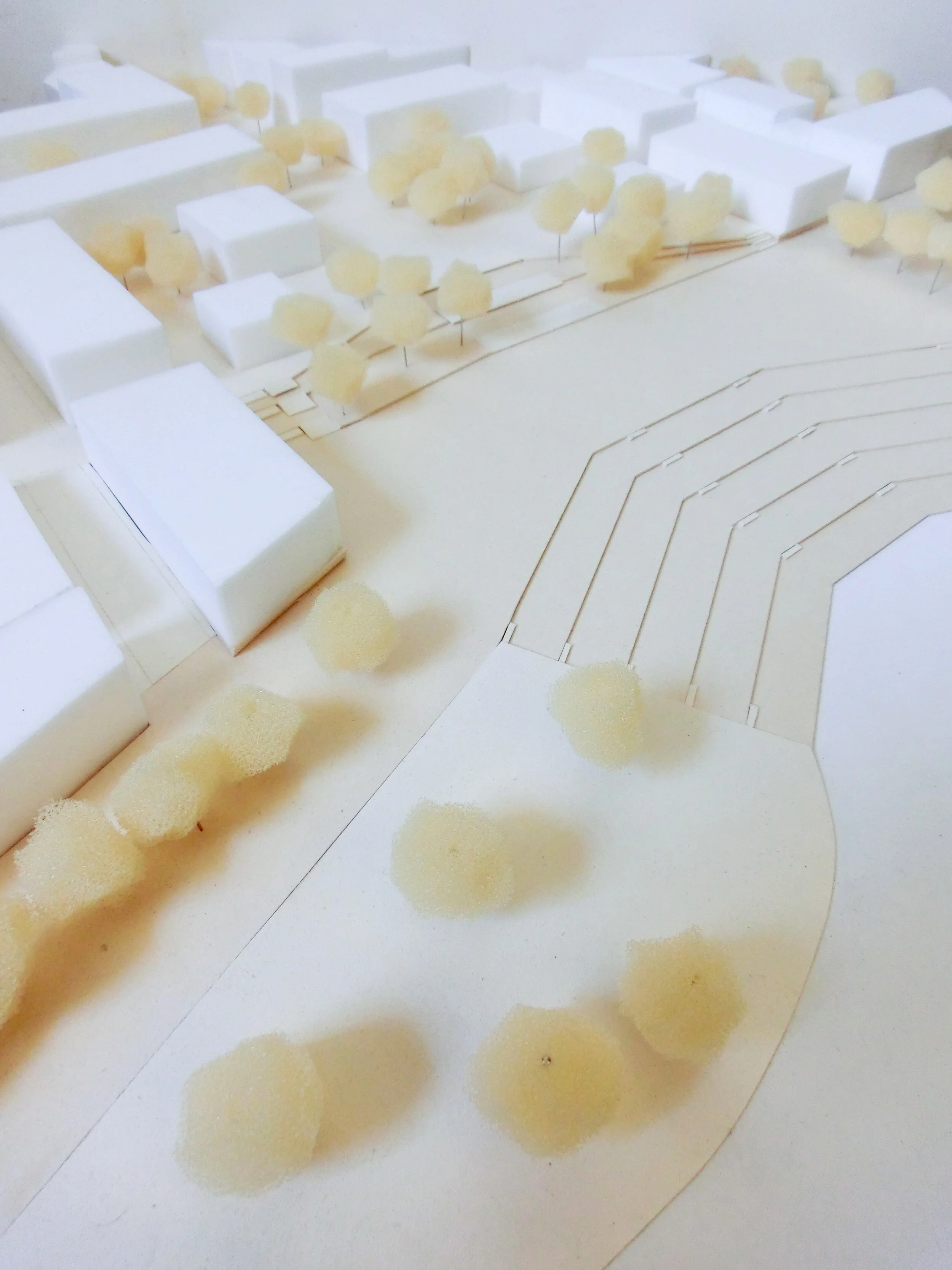It seemed only natural to my team of two architecture and two landscape architecture students to find an urban design for this topic by dealing with the qualities of such an environment rich in tradition. A population that has plenty of fresh air on the outskirts of the city, but hardly any parks to speak of, has long since taken to the field paths as jogging tracks, walking trails and excursion destinations. In our opinion, these people only need the appropriate valorisation of "their" landscape. Accordingly, we have decided not only to preserve the open space, but to make it the main component of a park. This outlines to the North-East of Feldmoching and connects on the other side to the South through a new neighbourhood. The park will extend between the lake Feldmoching and lake Fasanerie. The connection between the two lakes will be designed as a boulevard where cyclists can engage in sporting activities and those seeking recreation can stroll. The boulevard leads into a square at lake Feldmoching. On the one hand, this is the entrance to the park for people coming from the city, on the other hand, it is the access to the shopping street. A new underground station connects this new centre with the main city of Munich. Building height and density are high in this area. Towards the existing edges, this is increasingly loosened up, creating a flowing transition. The scenic charm of Munich's north can thus be preserved in the form of Mochinger Park, while it is showcased by a strong urban boundary.